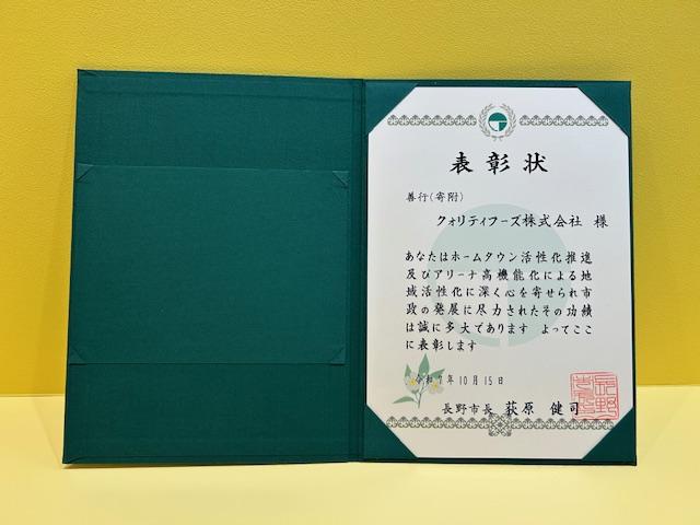 この度、長野市より市政の振興に尽力した功績が認められ、表彰を受けることとなり、10月15日(水)、長野市芸術館メインホールにて表彰式が行われました。